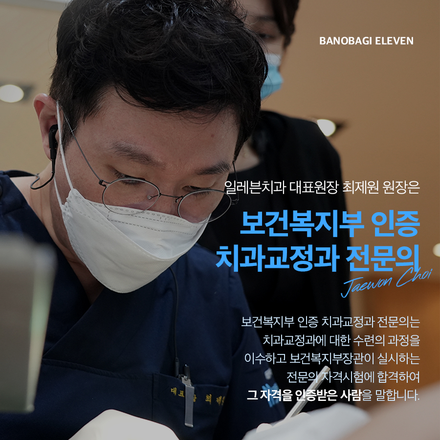 안녕하세요. 바노바기 일레븐치과 대표원장 교정과 전문의 최제원입니다.