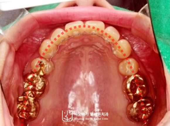 치열 상태로 보아 덧니가 크게 심하지는 않았습니다. 치열이 좀 불규칙하긴 해도, 앞니가 겹쳐진 곳은 없었지요.