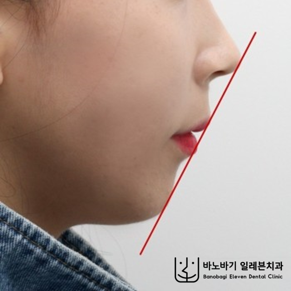 코끝에서 턱 끝으로 이어지는 심미선을 기준으로 보았을 때, 입술이 툭 튀어나왔습니다.