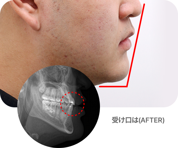 骨を切って位置を変える外科手術と比べると、 身体への負担が少なく、より安全性が高い方法でありながら、 通常の受け口矯正よりも はっきりとした顔立ちの変化が期待できます。
